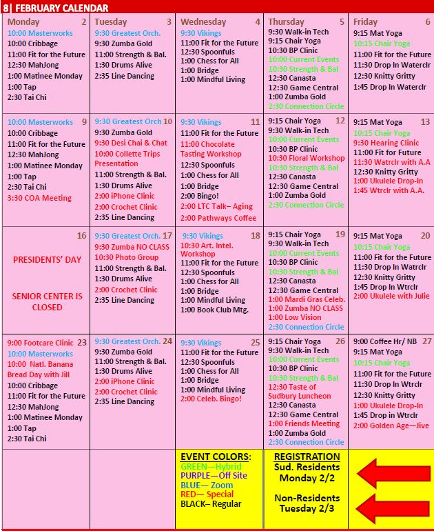 To register for any of our programs, please call the Sudbury Senior Center at (978) 443-3055 or email us at: [email protected]